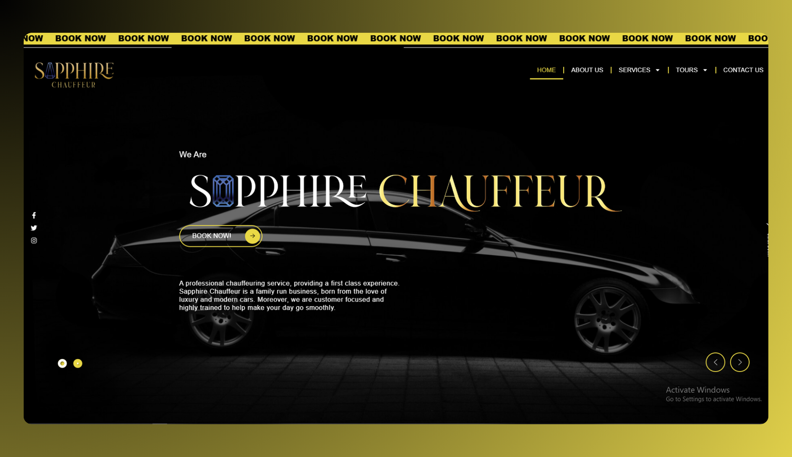 The visual branding was crafted to represent both professionalism and warmth. We chose a sophisticated color scheme with deep black (#1B1B1B), royal sapphire blue (#546DB4), and a refined gold-yellow accent (#e9d845). These tones communicate luxury, confidence, and approachability—perfect for a service-led, woman-owned business. Using strong layout sections, we highlighted core services: daily business runs, airport pickups, hourly bookings, and custom trips. Each interaction feels seamless, stylish, and secure—mirroring the chauffeur experience itself.