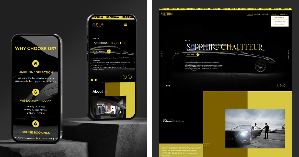 Sapphire Chauffeur’s new website is elegant yet efficient—just like their service. Built with intuitive navigation and quick booking access, the platform allows customers to find, choose, and book rides with ease. The site is fully responsive, mobile-ready, and designed for trust at every click. We spotlighted the business’s woman-owned leadership and personal touch—an important differentiator in the luxury transport space. From color palette to content structure, the site now reflects the values of safety, punctuality, and premium service.